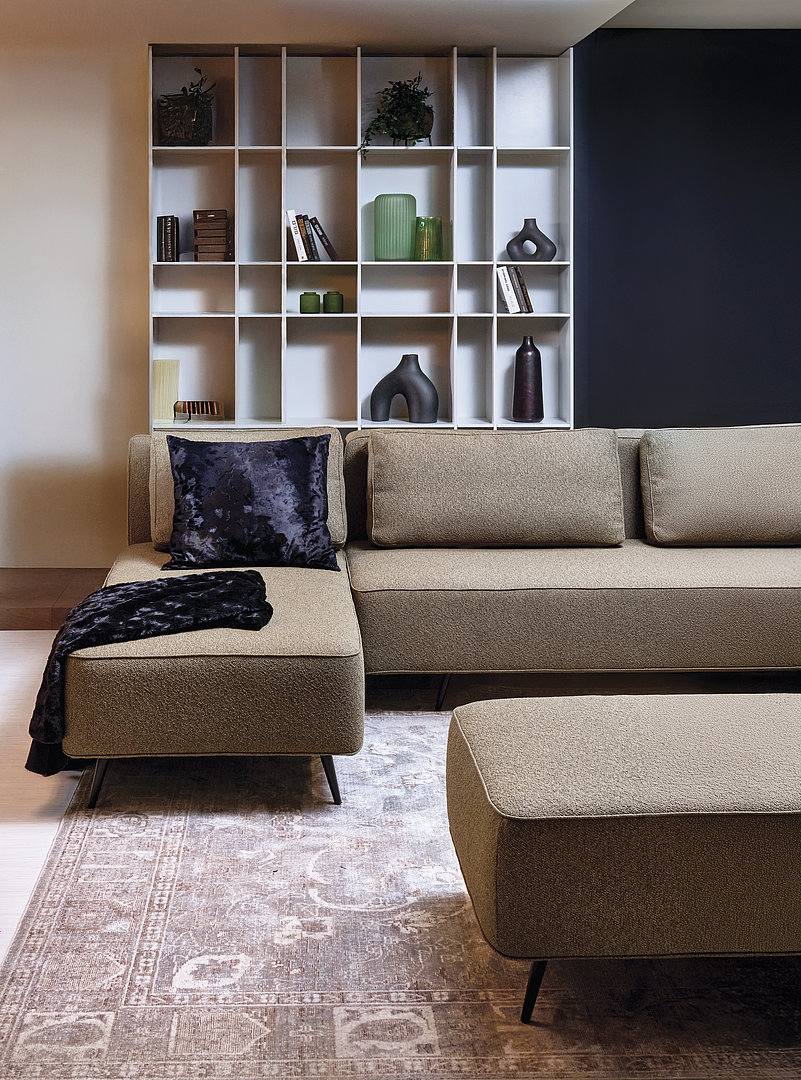 AIR můžete mít jako klasickou rovnou pohovku nebo ji můžete rozšířit o rohový modul. Celou sestavu pak můžete ještě doplnit o taburet, který je dostupný ve dvou velikostech a použít jej jako podnožku či konferenční stolek.